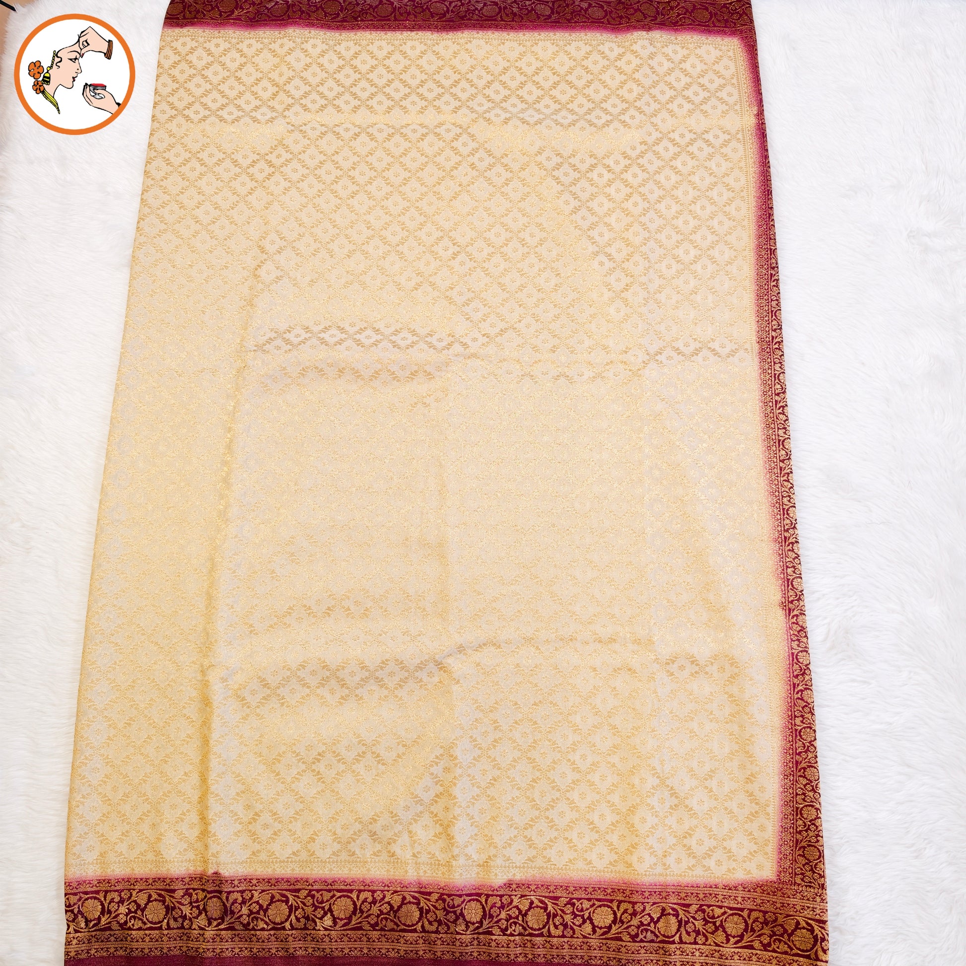 Cream with Maroon border Premium Banarasi Georgette Saree