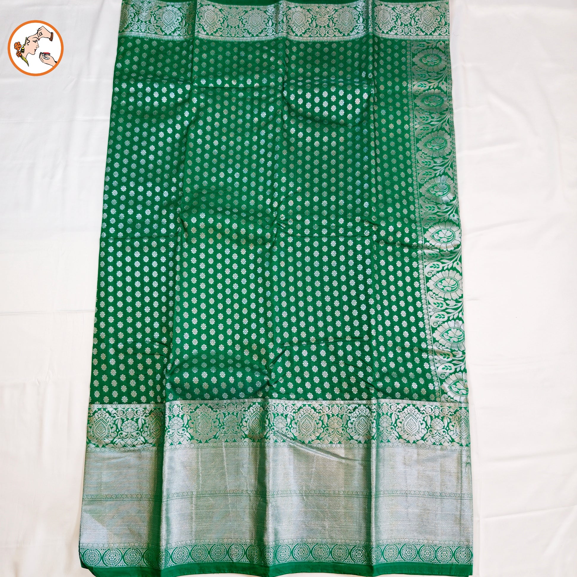 Dark Green Traditional 1000 butta Kanchipuram Silk Saree with Silver Jari