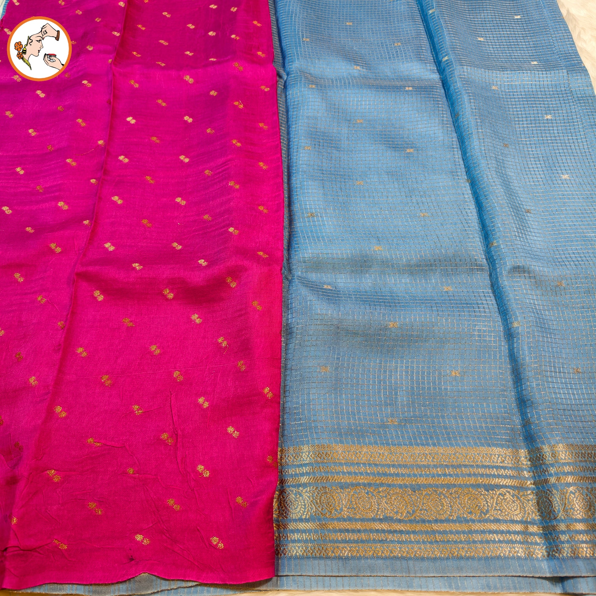 Light Blue Podi Kattam checks Viscose Silk Fancy Saree with Contrast blouse