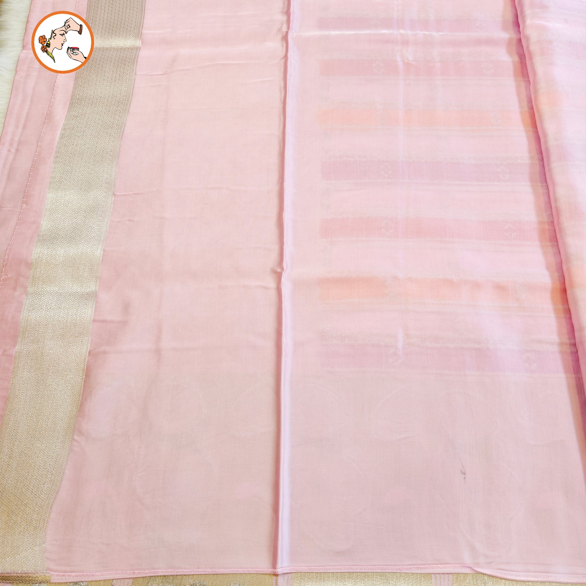 Light Pink multicolour stripes Fancy border Satin Banarasi Silk Partywear Saree