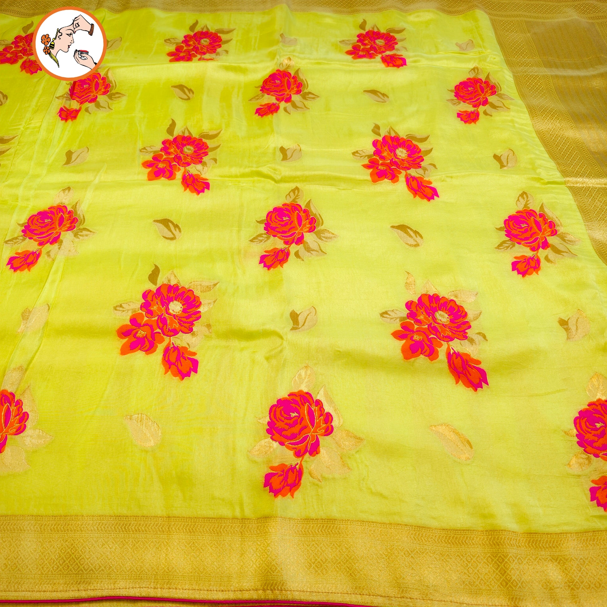 Lime Green floral Half Saree Banarasi Style Silk Designer Saree
