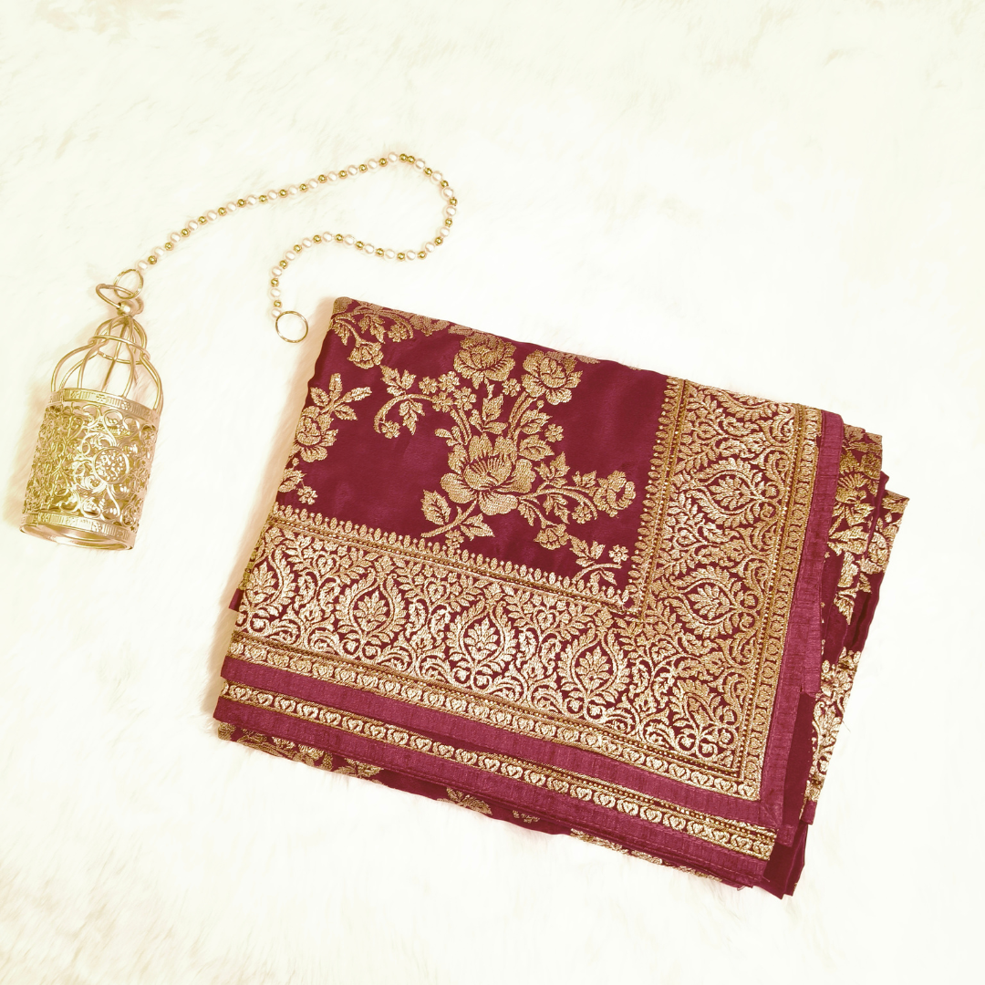 Step into elegance with this Maroon Satin Partywear Saree, enhanced with rich embroidery that adds a luxurious and graceful touch. Perfect for weddings, receptions, and festive celebrations, this saree ensures a stunning and sophisticated look.