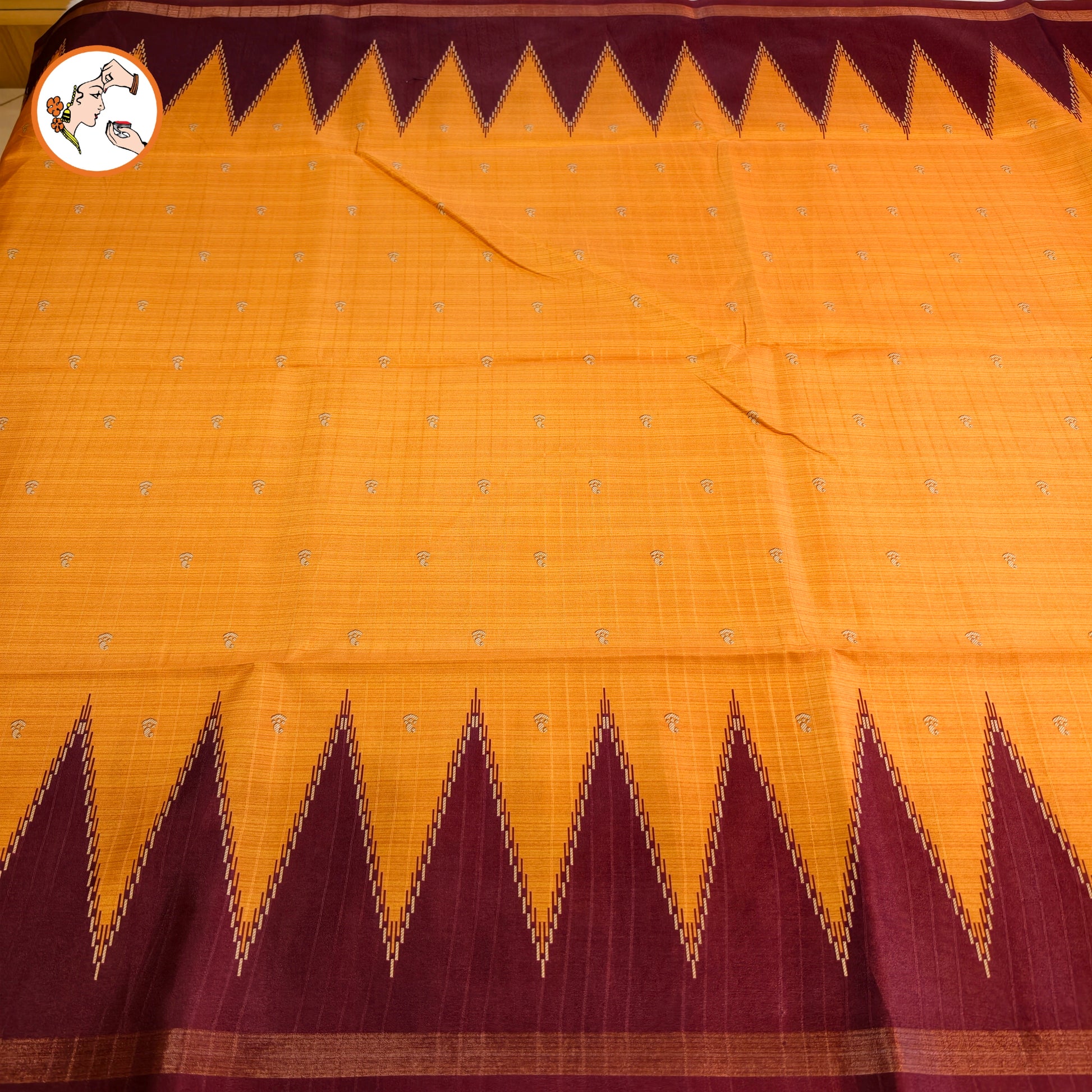 Orange with Maroon temple border Dola Silk Casual Saree