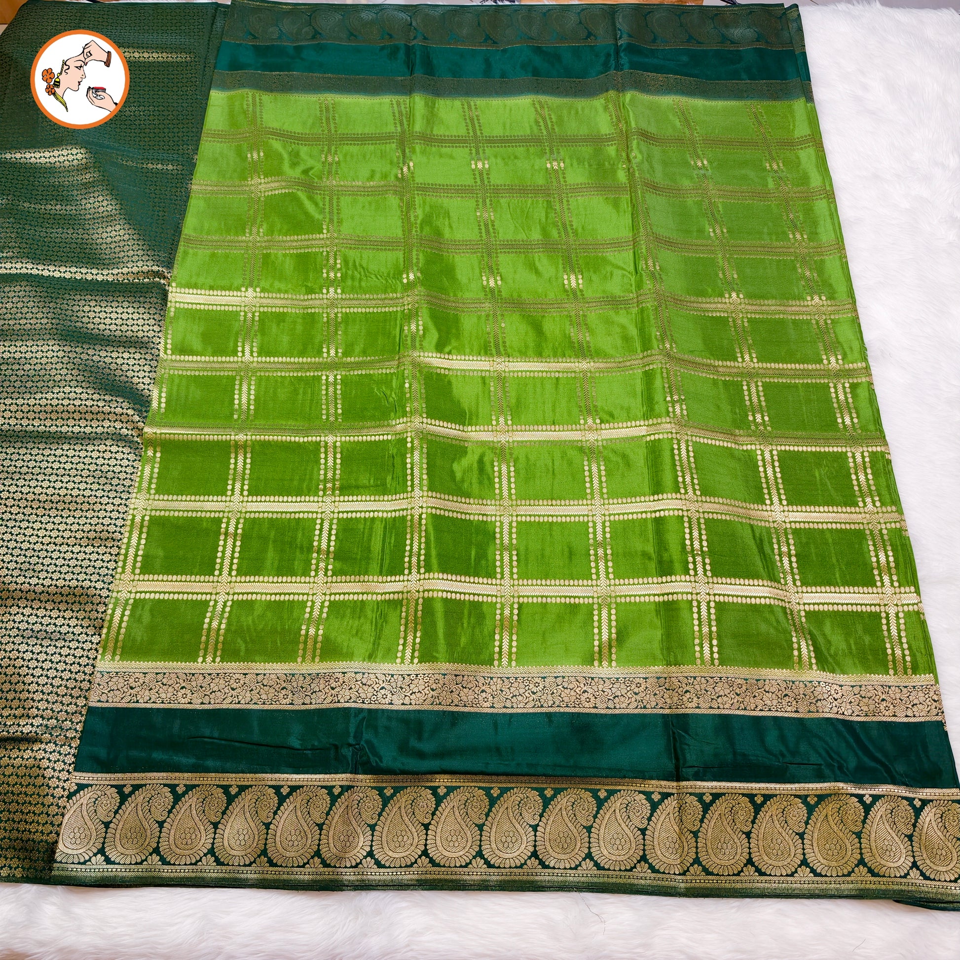 Parrot Green & Dark Green Royal Mango border Mysore Silk Saree