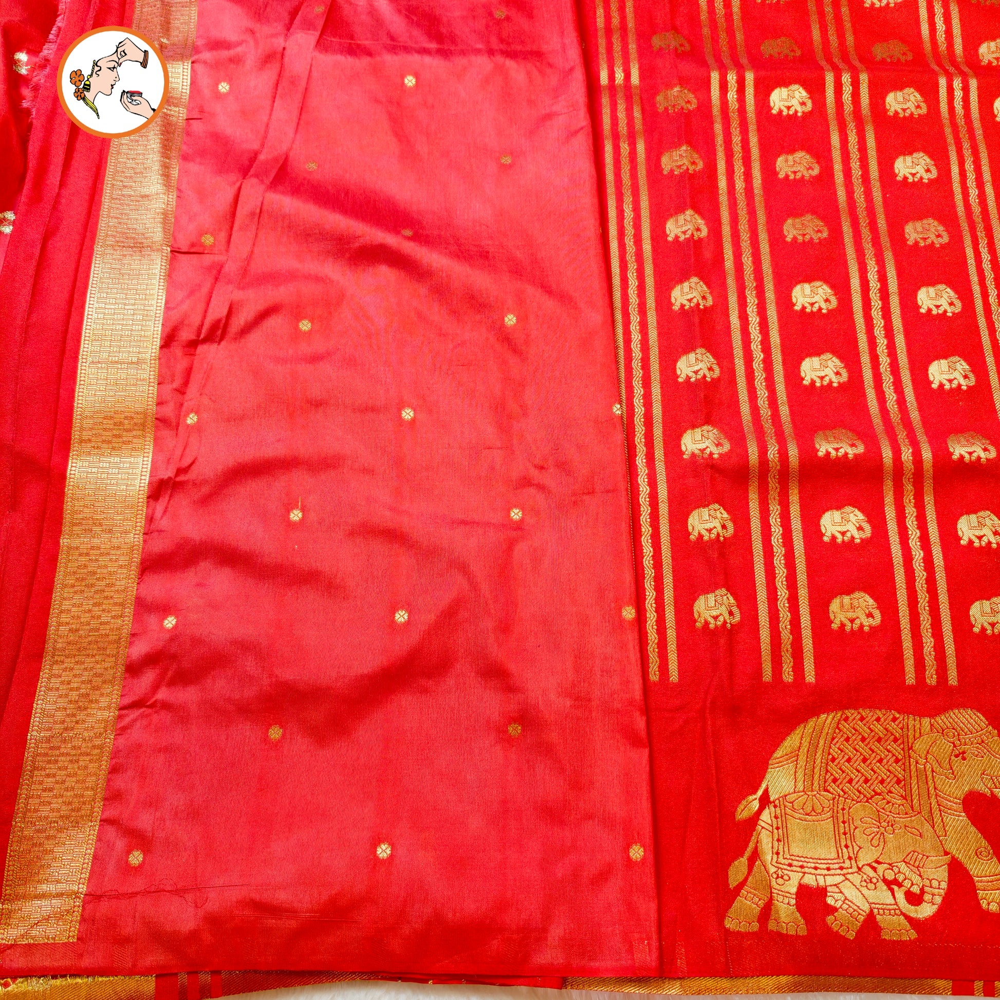 Red Viscose Soft Silk Saree with Elephant motifs & border