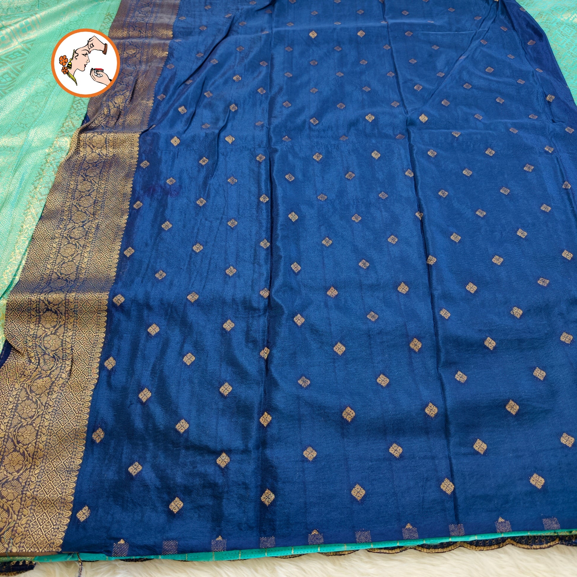 Sky Blue with Dark Blue lace border Banarasi Silk Partywear Saree